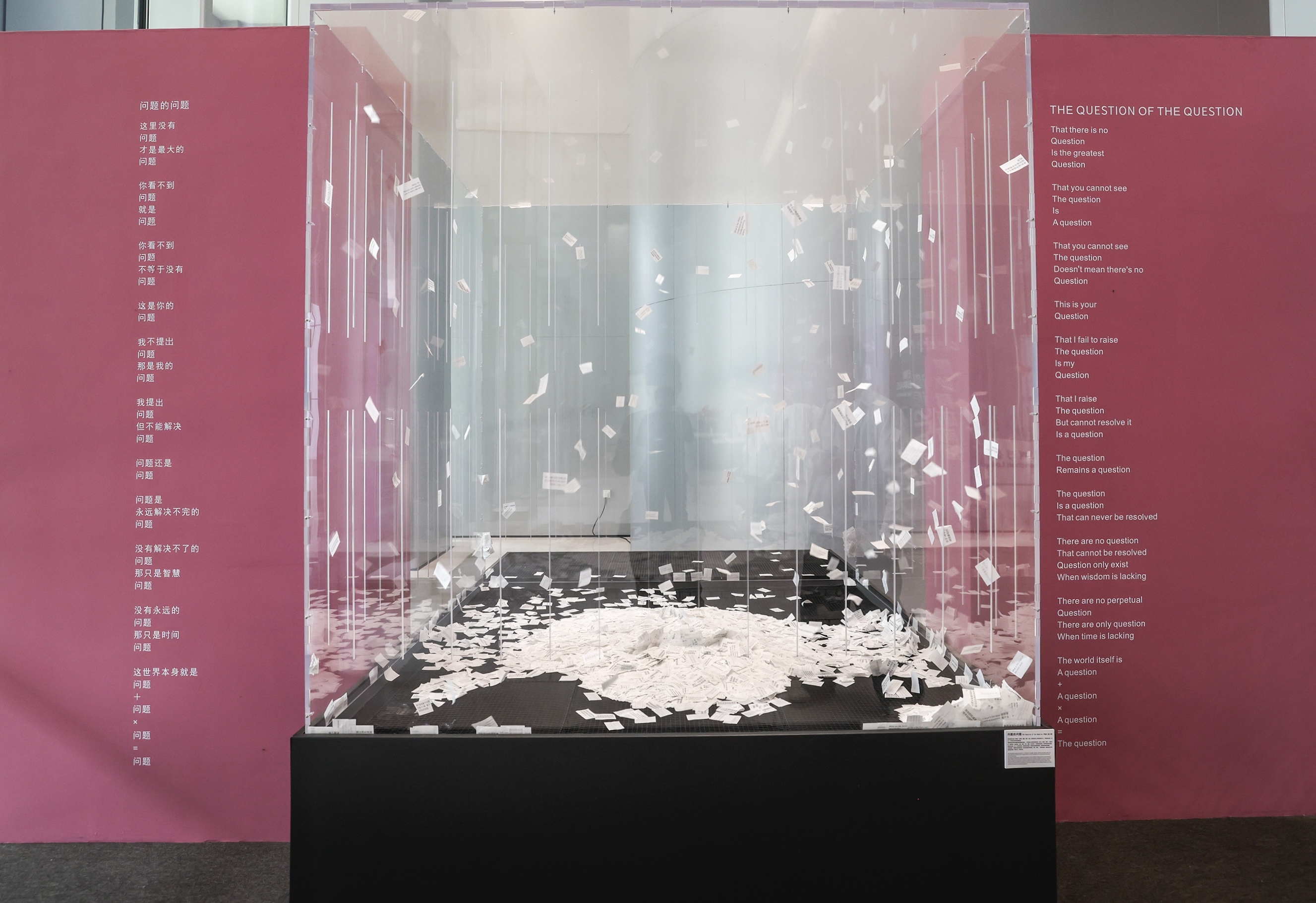 3月29日开放日,不少学生驻足于学院入门一隅的“问题风箱”互动装置前,近一万张纸条上的科学未解问题,在旋风中涌动。
